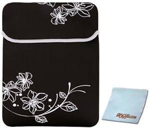 Dress up your beloved 14 inch notebook laptop with this stylish black and white blossom flowers netbook carry case. Here's the protection you need for your notebook computer. Its neoprene construction provides protective cushioning that feels great in your hand. Easy to slip on, slip off. Neoprene is water resistant and will protect your investment from leaks or spills as well. This computer sleeve with flap over closure secures your notebook device. Comes with Microfiber cleaning cloth to keep your LCD screen clean and clear.