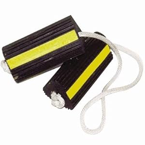 Ribbed chock for aircraft or ground equipment, or for anchoring large pipe. 3ft. nylon rope. Reflective tape on three sides for improved visibility. Height (in.): 4, Material: Rubber, Reflective: Yes, Rope Length (ft.): 3, Working Width (in.): 8, Includes (qty.): (1) Set, Length (in.): 4