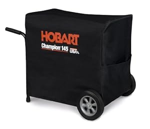 Hobart Champion(r) 145 Protective Cover 770714 Hobart Champion(r) 145 Protective Cover is a weather-proof cover for the Champion(tm) 145 Welder/Generator. This rugged, fitted accessory is designed to protect your investment and show pride-of-ownership. The vinyl laminated polyester fabric resists stains and mildew. The cover fits the unit with or without wheel kit and handles attached, utilizing a Velcro closure corner seam. A large front pocket provides storage for welding cables. Designed and sewn in the USA. Features Fitted, outdoor weather-proof cover. Rugged, bold appearance shows pride of ownership and protects your investment. Fits Hobart Champion(r) 145 with or withouthandles and wheel kit installed. Side-fastening hook & loop seam.Large pocket on front is convenient forwelding cable storage. Easy to attach and remove. Dimensions: 25-1/4 in. x 22 in. x 31-1/4 in. Free